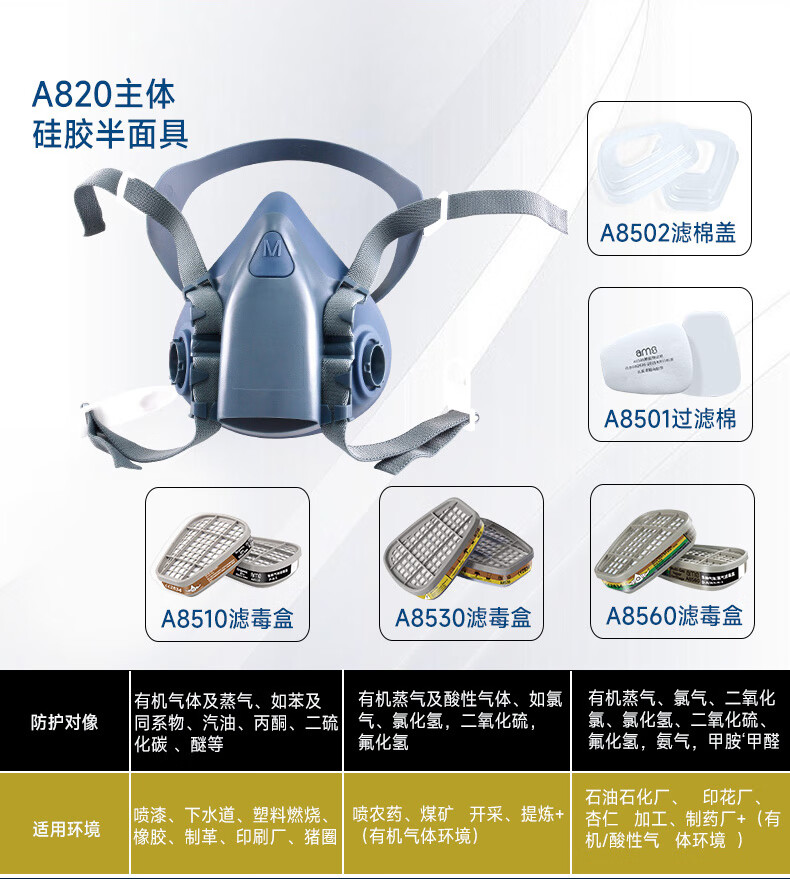 Mặt nạ Ams nửa mặt cao su silicon A820